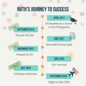 Ruth’s journey began in 2011, when she graduated with her nursing degree and was a nurse in the Philippines.